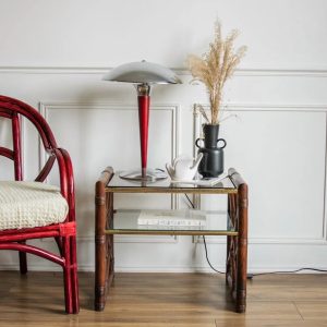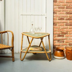 Francine, la table d’appoint en rotin et verre N°444