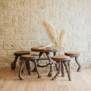 Ange, l’ensemble de table et chaises en pieds de vigne N°7