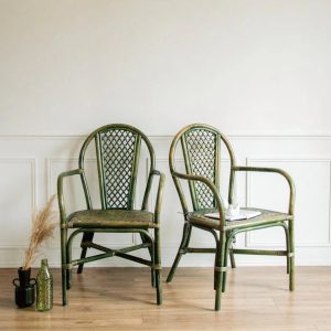 Ernest, la paire de fauteuils en rotin vert N°557