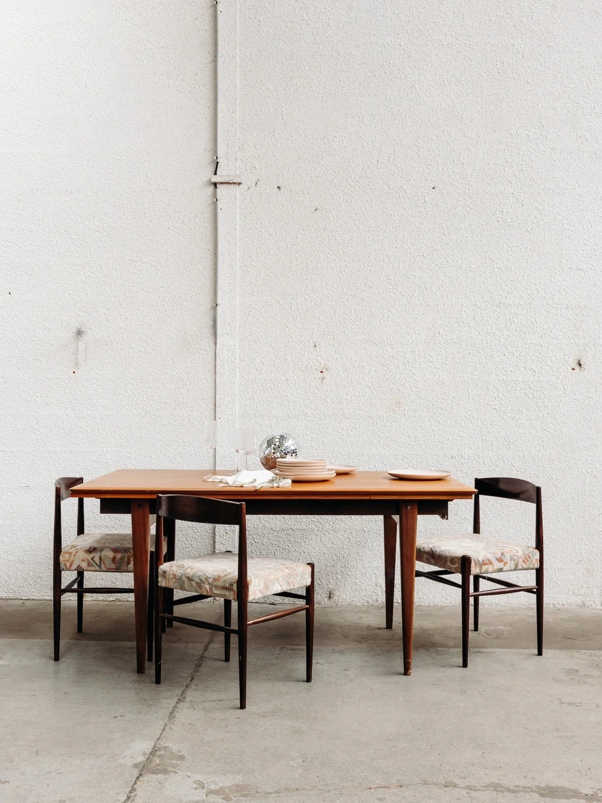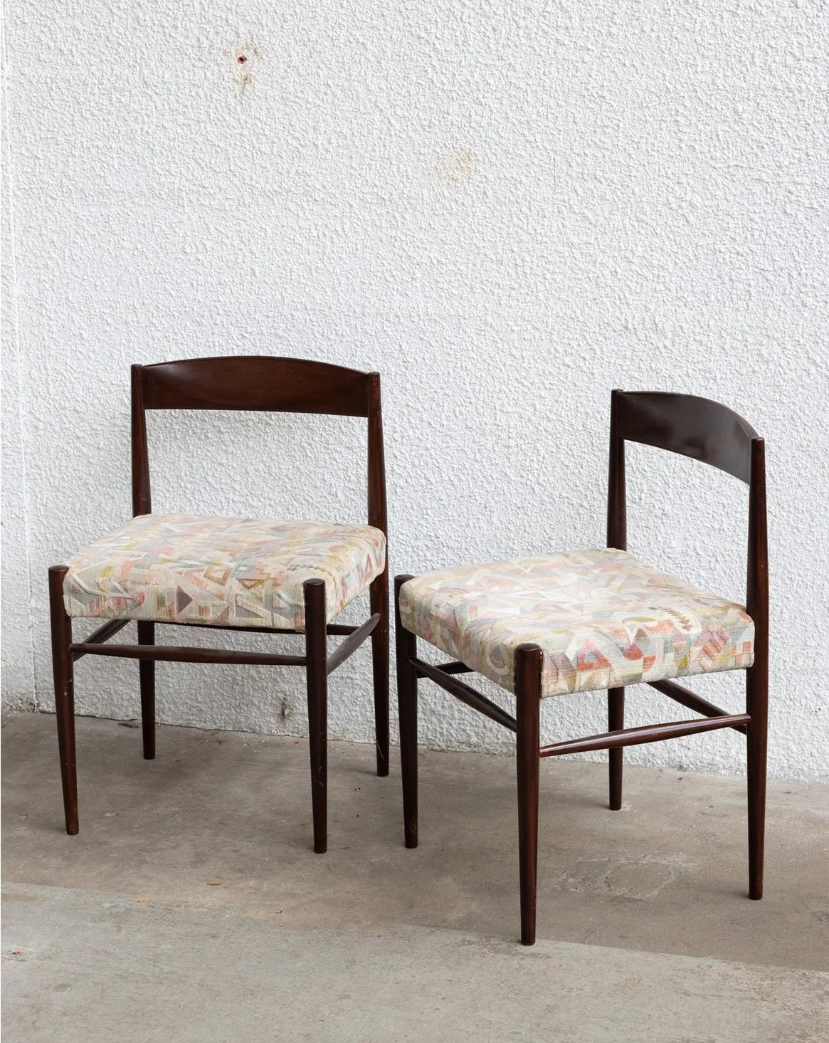 Coup de coeur pour ces chaises scandinaves ! Tapissées de teintes pastels délicates et ornées de motifs géométriques modernes, elles apportent une note de dynamisme à n’importe quelle pièce. La structure en bois d’acajou assure non seulement une solidité à toute épreuve, mais également une élégance intemporelle, aux lignes droites et épurées. Idéales pour une salle à manger, un bureau ou un coin lecture, ces chaises allient confort et style, faisant d’elles un choix parfait pour les amateurs de décoration vintage ! Quelques traces d’usure sur les assises sont à observer sur les photos. Vendues en lot de deux.