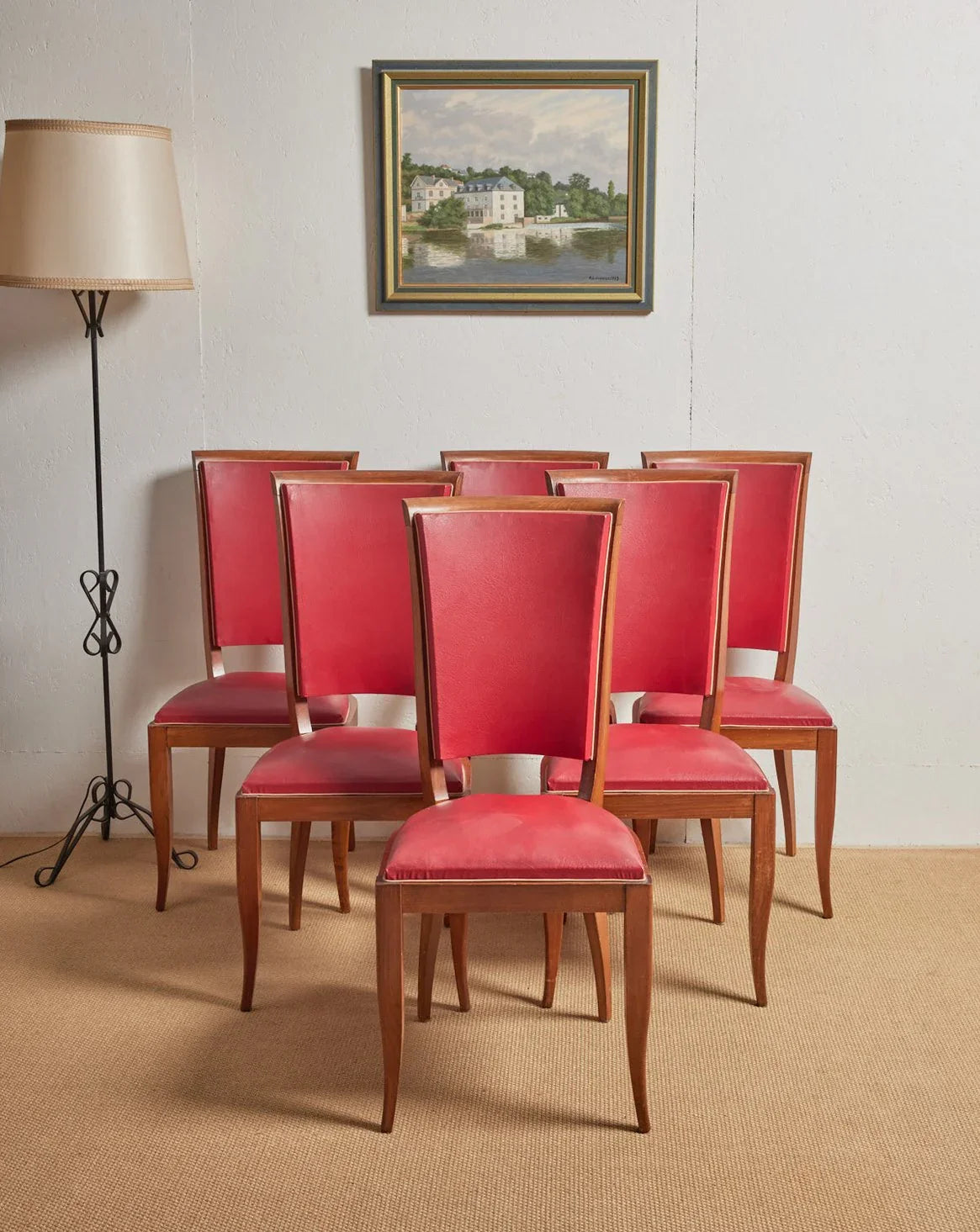 Invitez une touche rétro et colorée avec ce lot de six chaises en skaï rouge sur piétement bois, où la teinte chaleureuse dialogue avec la noblesse du bois. Leur assise en skaï offre un entretien facile tandis que la structure en bois assure stabilité et confort pour les repas quotidiens ou les soirées entre amis. Compactes et bien proportionnées, elles s’intègrent aussi bien autour d’une table de salle à manger que dans une cuisine conviviale, apportant une ambiance accueillante et graphique.