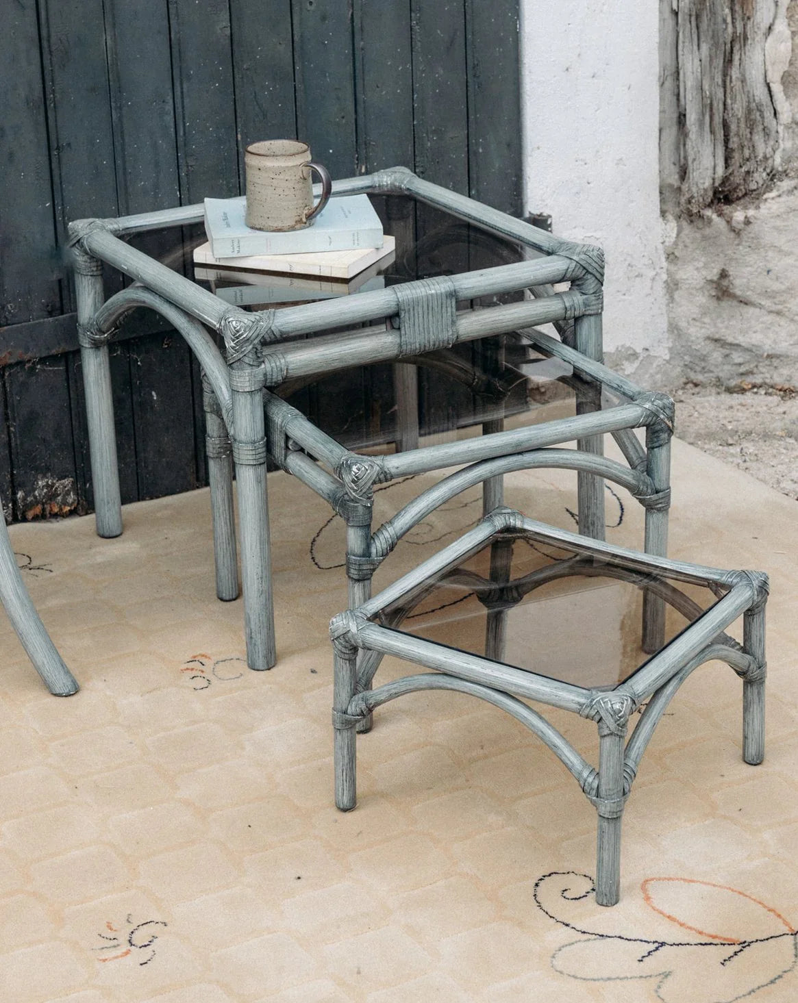 Découvrez cet ensemble de 3 tables gigognes Maugrion en rotin gris, à l’allure élégante et naturelle. Leurs plateaux carrés en verre ajoutent une touche de légèreté et de transparence. Pratiques et empilables, elles s’adaptent à tous vos espaces. Leur finition soignée souligne un design raffiné et intemporel. Apportez une note vintage et fonctionnelle à votre intérieur.