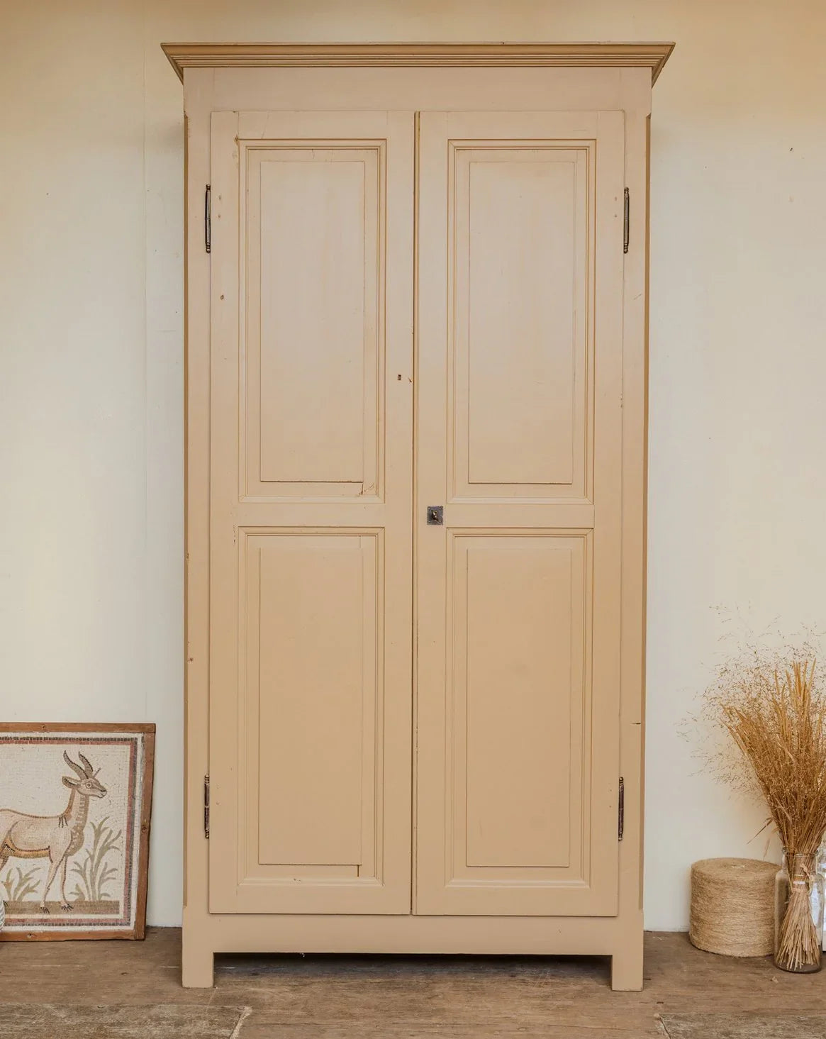 Apportez une note de campagne revisitée avec cette armoire ancienne, soigneusement poncée puis repeinte d’un beau beige qui met en valeur la patine du bois. Quatre étagères modulables offrent une belle capacité pour organiser vaisselle, linge ou objets déco, tandis que sa silhouette droite s’intègre aisément dans cuisine, salle à manger ou chambre. Livrée avec sa clé, elle conjugue praticité et charme discret. Légères traces du temps qui participent à son charme.