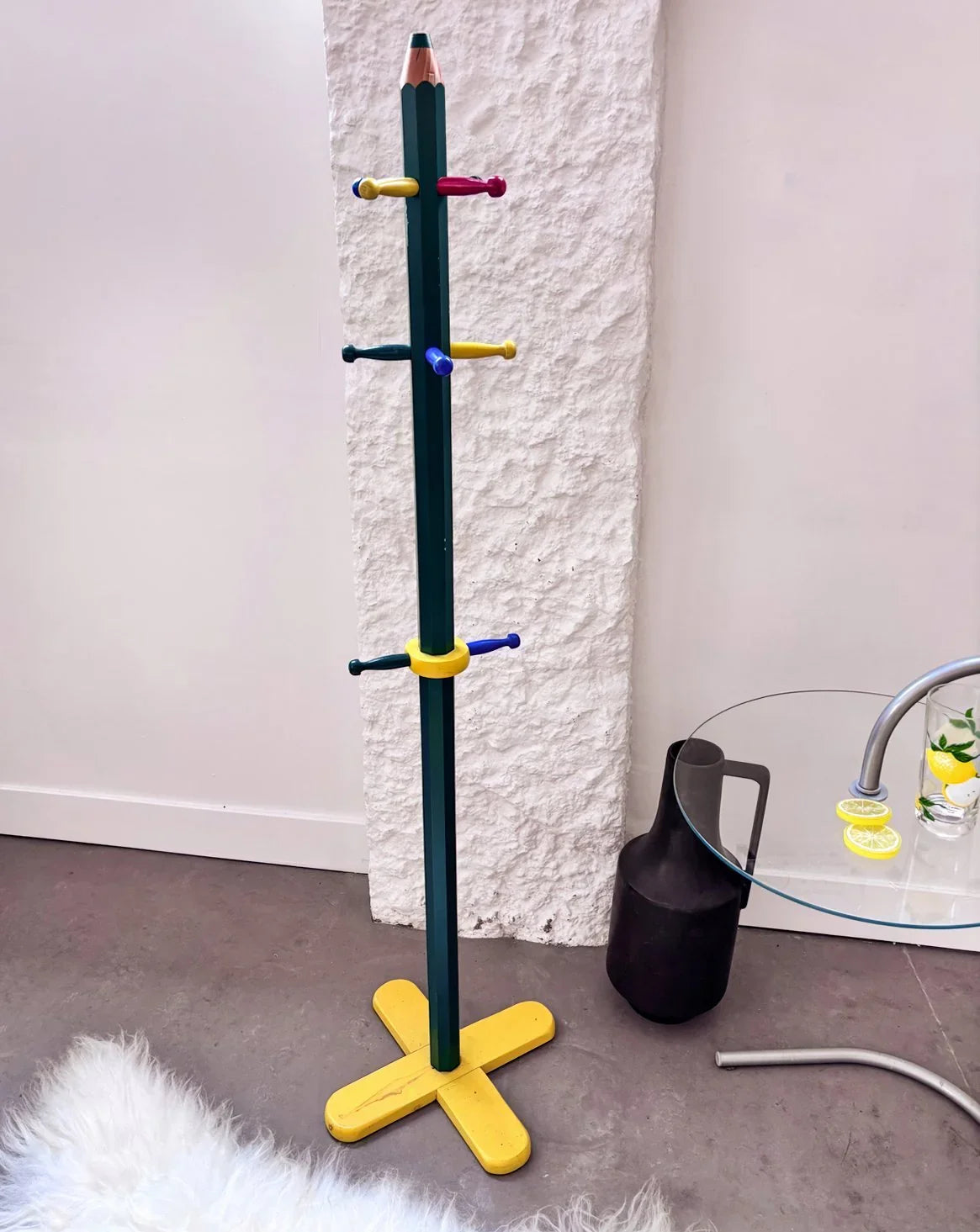 Ajoutez une touche rétro à votre intérieur avec ce porte-manteau coloré en bois des années 80, dans le style emblématique de Pierre Sala. Doté de 10 accroches robustes, ce meuble fonctionnel allie esthétisme et praticité, parfait pour accueillir manteaux, écharpes et chapeaux. Son design audacieux et ses teintes vibrantes apportent une note de gaieté à votre hall ou couloir, tout en restant intemporel. Un incontournable pour les amateurs de vintage en quête de caractère !