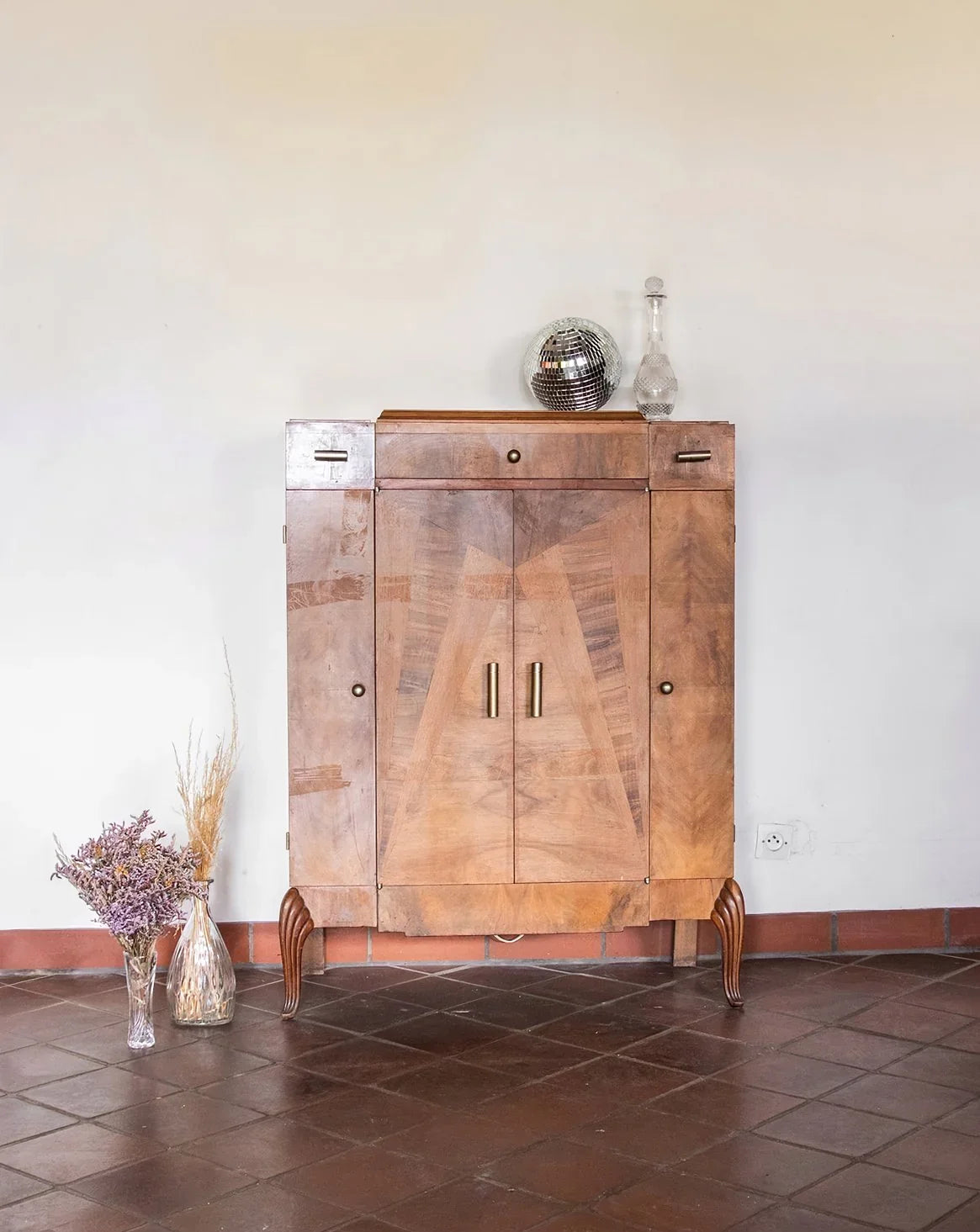 Découvrez ce magnifique meuble à musique en bois, orné d’une délicate marqueterie qui apportera une touche d’élégance à votre intérieur. Avec ses amplis et sa platine vintage, ainsi que ses quatre espaces de rangement pour vos vinyles, cet objet au charme rétro est idéal pour les mélomanes. Doté de poignées métalliques et de deux tiroirs pratiques, ce meuble nécessite une restauration pour retrouver toute sa fonctionnalité et être pleinement utilisable au quotidien.