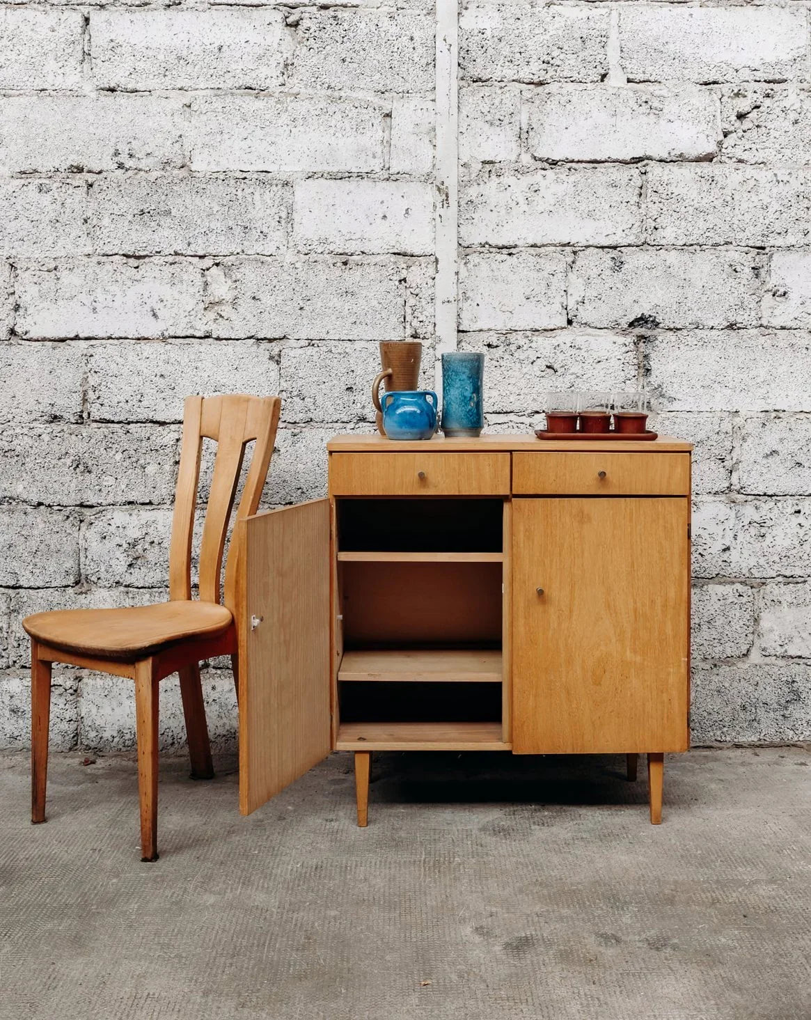 Ce meuble de rangement en bois clair avec deux tiroirs et deux placards combine simplicité et praticité. Son design épuré et sa finition naturelle apportent une touche de douceur et de légèreté à votre intérieur, tout en offrant un espace de rangement généreux et bien organisé. Idéal pour un salon ou une entrée, il allie esthétique moderne et fonctionnalité.