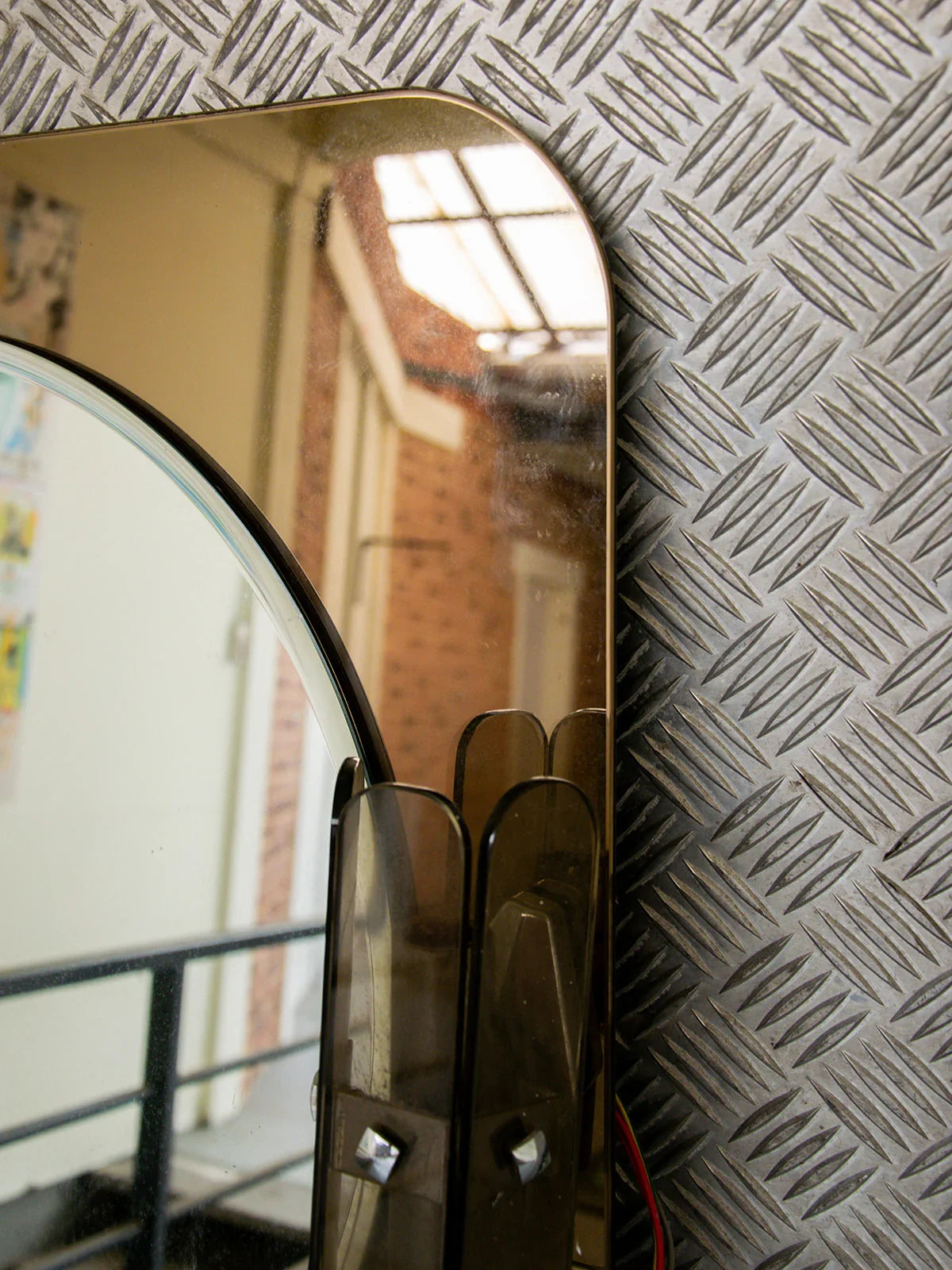 Découvrez ce miroir rond à la structure en verre, accompagné de deux appliques en verre qui l’encadrent avec élégance. Son design épuré apporte une belle présence murale, tout en jouant subtilement avec la lumière. Malgré deux éclats visibles sur la structure, cela ne change rien à son charme. Il conserve tout son attrait et son allure rétro. Une belle pièce pour compléter une entrée ou une salle de bain.