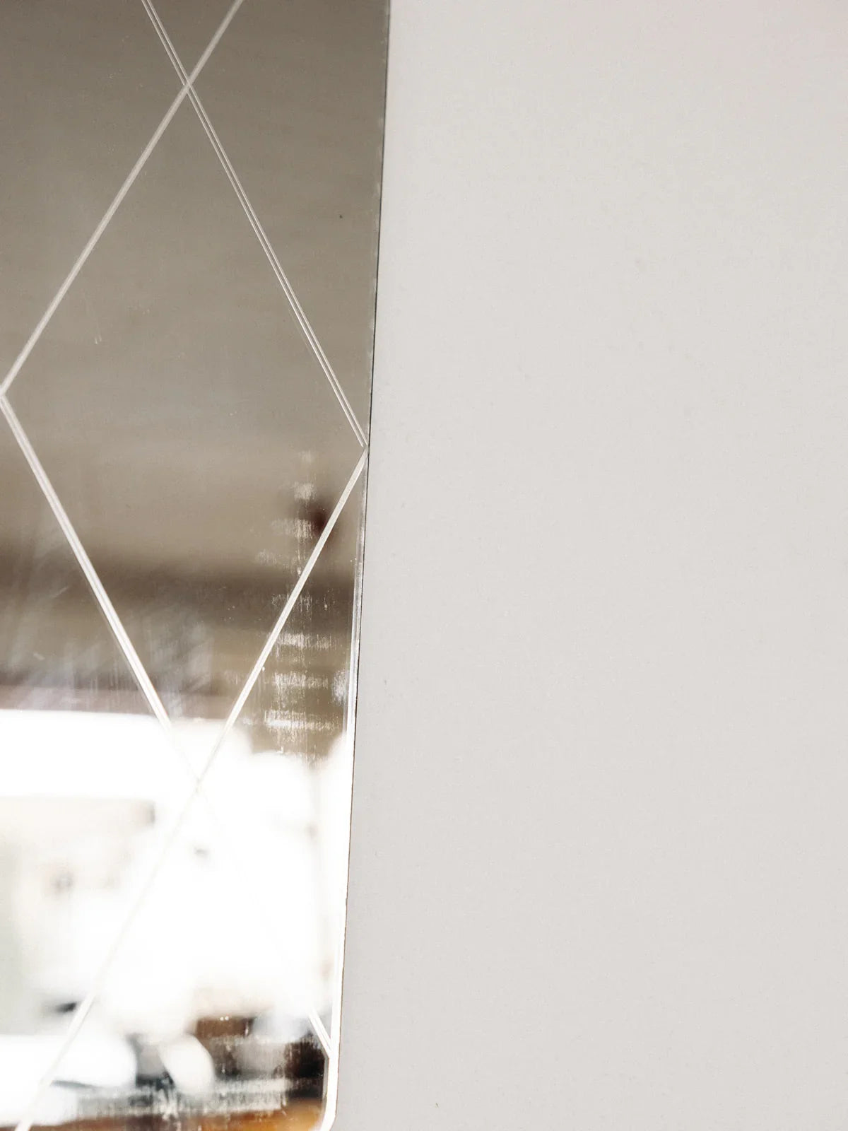 Ce miroir avec dessins losange apporte une touche graphique et moderne à votre intérieur. Son cadre unique, orné de motifs losanges délicats, crée un effet visuel captivant et élégant. Parfait pour ajouter de la texture et de la lumière à votre espace, il s’intègre facilement dans des décors contemporains tout en apportant une note artistique et chic.