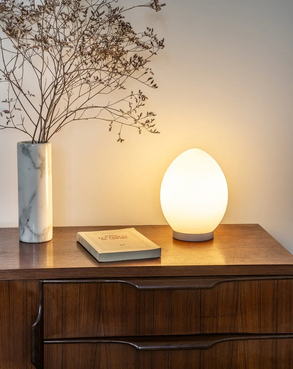 Découvrez cette lampe ovoïde en verre opalin blanc, un véritable hommage au design des années 70. Son socle discret met en valeur la douceur de ses courbes, tandis que ses lignes épurées diffusent une lumière chaleureuse et apaisante. Cette pièce emblématique du design moderniste s’intègre parfaitement sur une étagère, un bureau ou une table de chevet, créant une ambiance unique et stylée dans votre intérieur.