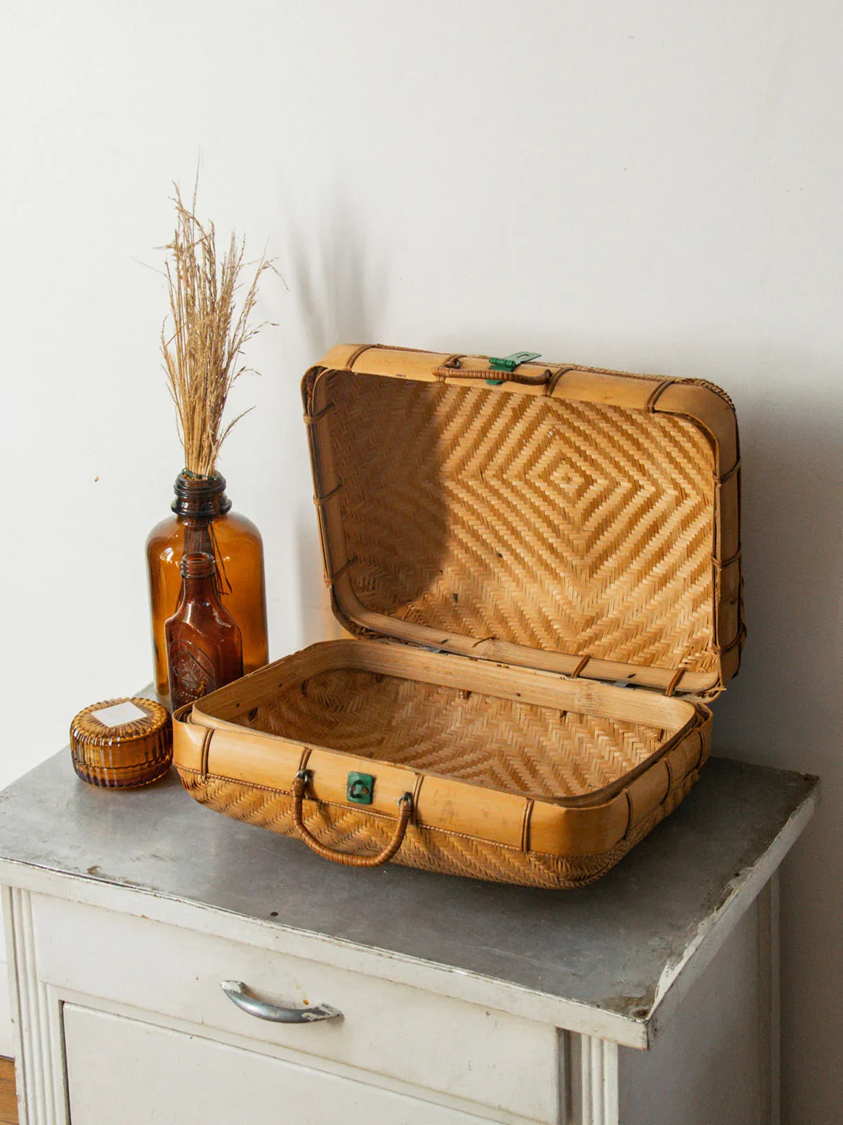 Apportez une touche naturelle et vintage à votre intérieur avec cette jolie malle en cannage. Idéale pour ranger de petits objets, elle peut aussi être utilisée en élément déco dans une chambre, une entrée ou un salon. Son tressage raffiné et sa forme compacte lui permettent de s’intégrer facilement à tout type d’ambiance. Quelques marques du temps viennent souligner son charme ancien. Un accessoire aussi pratique qu’esthétique.