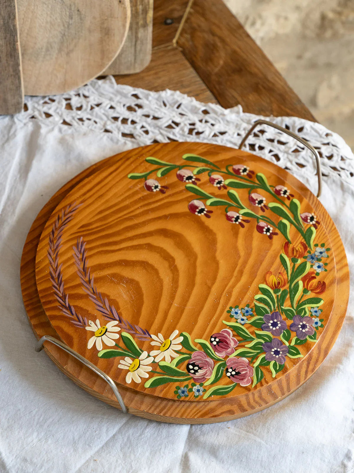 Découvrez notre plateau en bois vintage, orné de motifs floraux délicatement peints à la main. Sa finition soignée et ses anses en métal ajoutent une touche d’élégance et de praticité à votre table. Idéal pour servir vos apéritifs ou comme élément décoratif, ce plateau combine style et fonctionnalité. Ajoutez-le à votre collection pour une ambiance chaleureuse et authentique !
