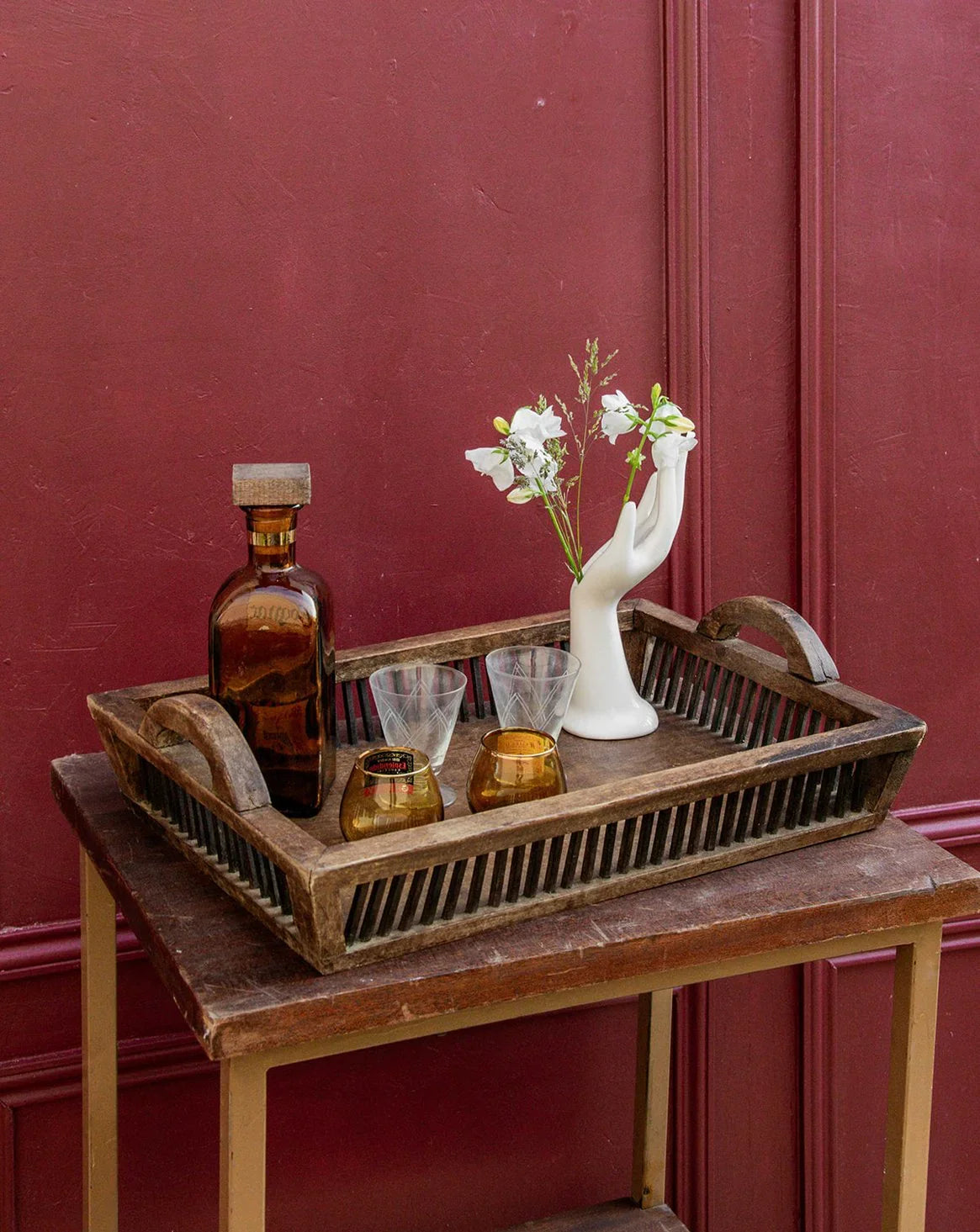 Découvrez ce plateau en bois rehaussé d’un contour en métal, une pièce qui allie élégance et fonctionnalité. Parfait pour servir vos boissons et en-cas, il s’intègre harmonieusement dans tous les styles d’intérieur, du rustique au contemporain. Avec son design raffiné, ce plateau devient un accessoire déco incontournable, idéal pour sublimer vos moments de convivialité. Apportez une touche chic et intemporelle à votre table ou à votre quotidien.
