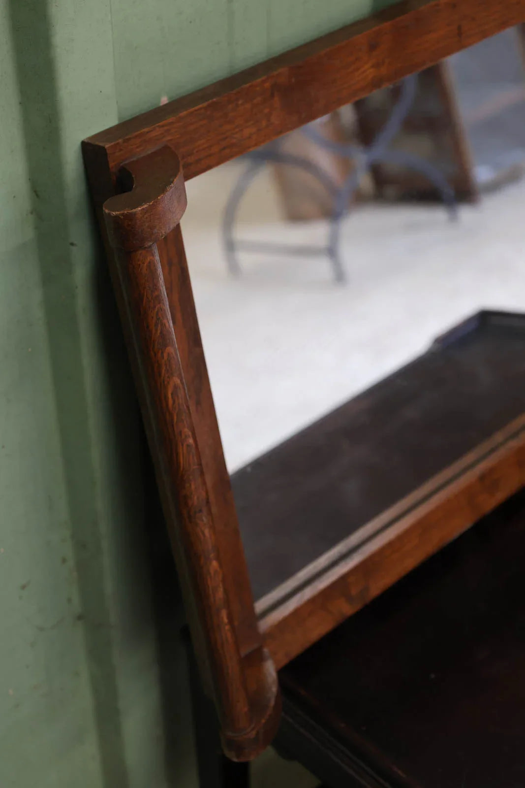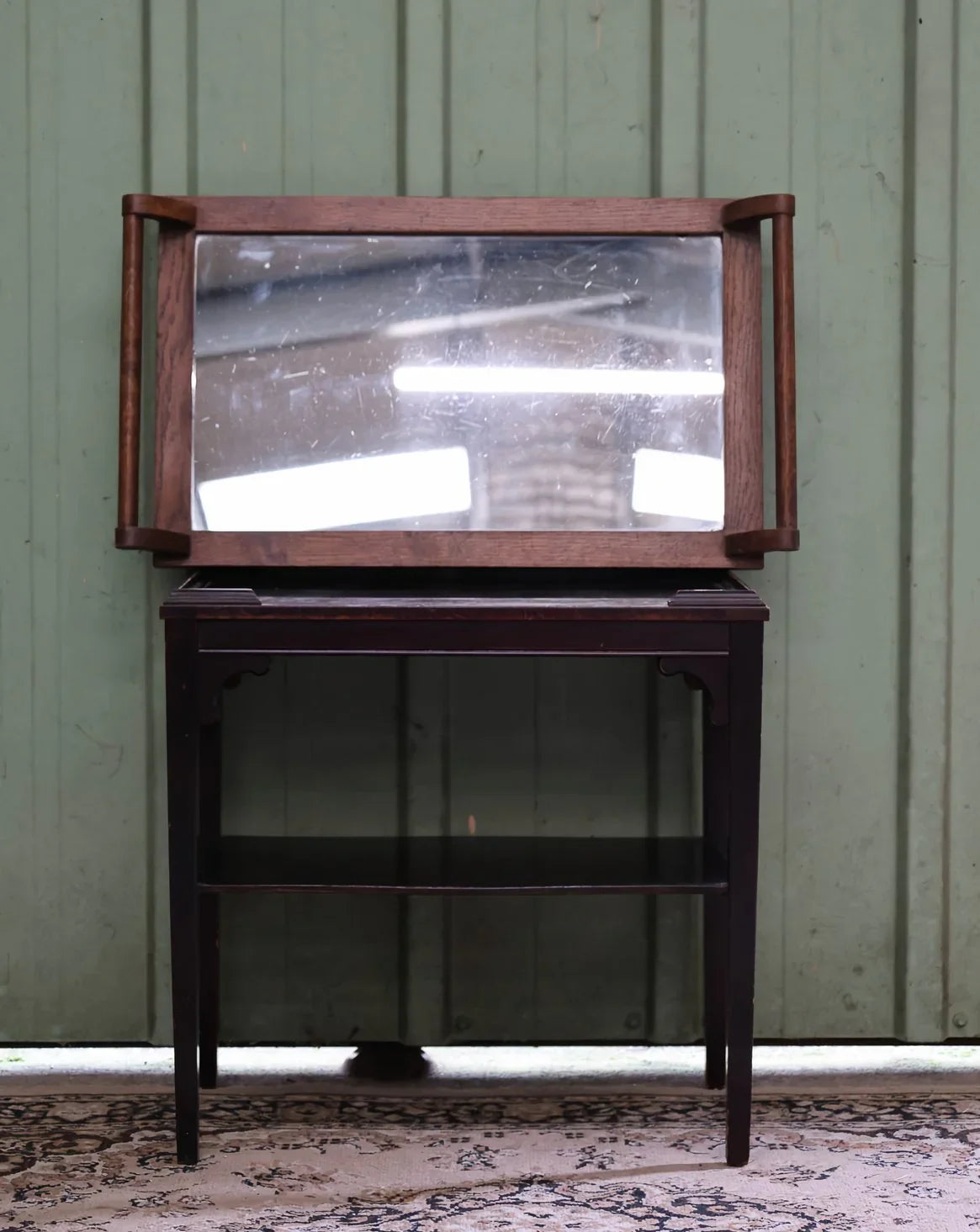 Adoptez ce plateau en bois à insert miroir, empreint d’un style Art déco rehaussé par deux poignées en bois sculpté qui lui donnent une présence graphique et raffinée. Son format allongé et peu profond en fait un support élégant pour présenter parfums, bougies ou bijoux, ou pour servir avec délicatesse lors d’un apéritif intimiste. Le contraste entre la chaleur du bois et la brillance du miroir crée une atmosphère chaleureuse et lumineuse, parfaite pour sublimer une coiffeuse ou une console. Usures légères présentes.