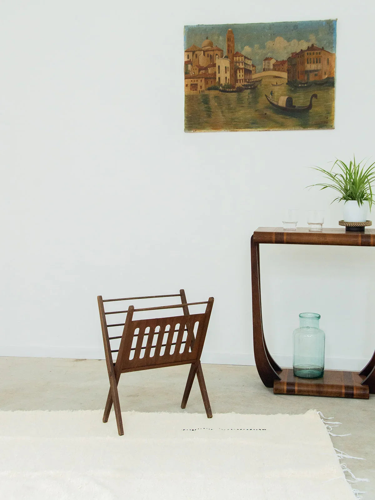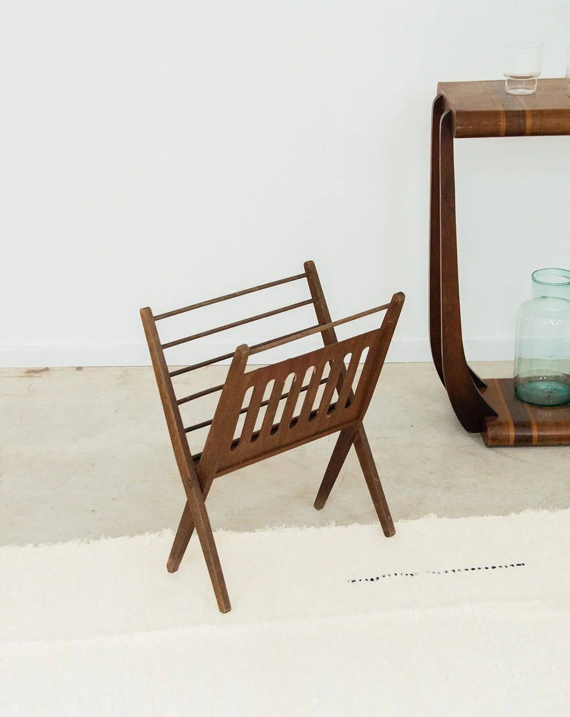 L’accessoire vintage par excellence, c’est lui ! Un range-revues pliable en bois, parfait pour ranger livres et magazines qui traînent dans le salon ou dans la chambre. Nous l’avons choisi pour son look délicieusement vintage aux notes très seventies, ainsi que sa petite taille, qui en fait un objet adorable et passe partout.