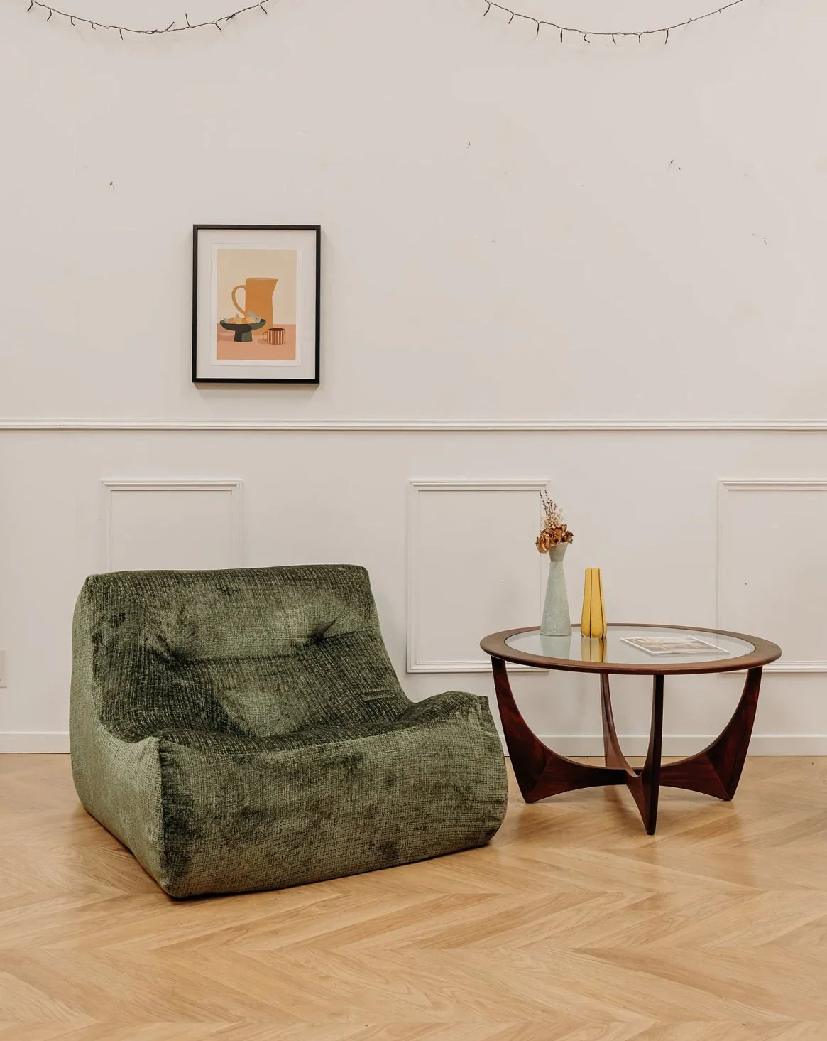 Découvrez la chauffeuse Kali vintage, un chef-d’œuvre iconique des années 70 conçu par Michel Ducaroy pour Ligne Roset. Riche en histoire, cette pièce d’origine anglaise a été soigneusement retapissée par notre atelier, offrant une assise moelleuse en mousse sans point dur, idéale pour un confort durable. Son tissu en velours vert apporte une touche déco authentique et chaleureuse, faisant de ce fauteuil un incontournable pour les amateurs de design vintage. Plongez dans l’élégance rétro avec ce modèle unique au style inimitable.