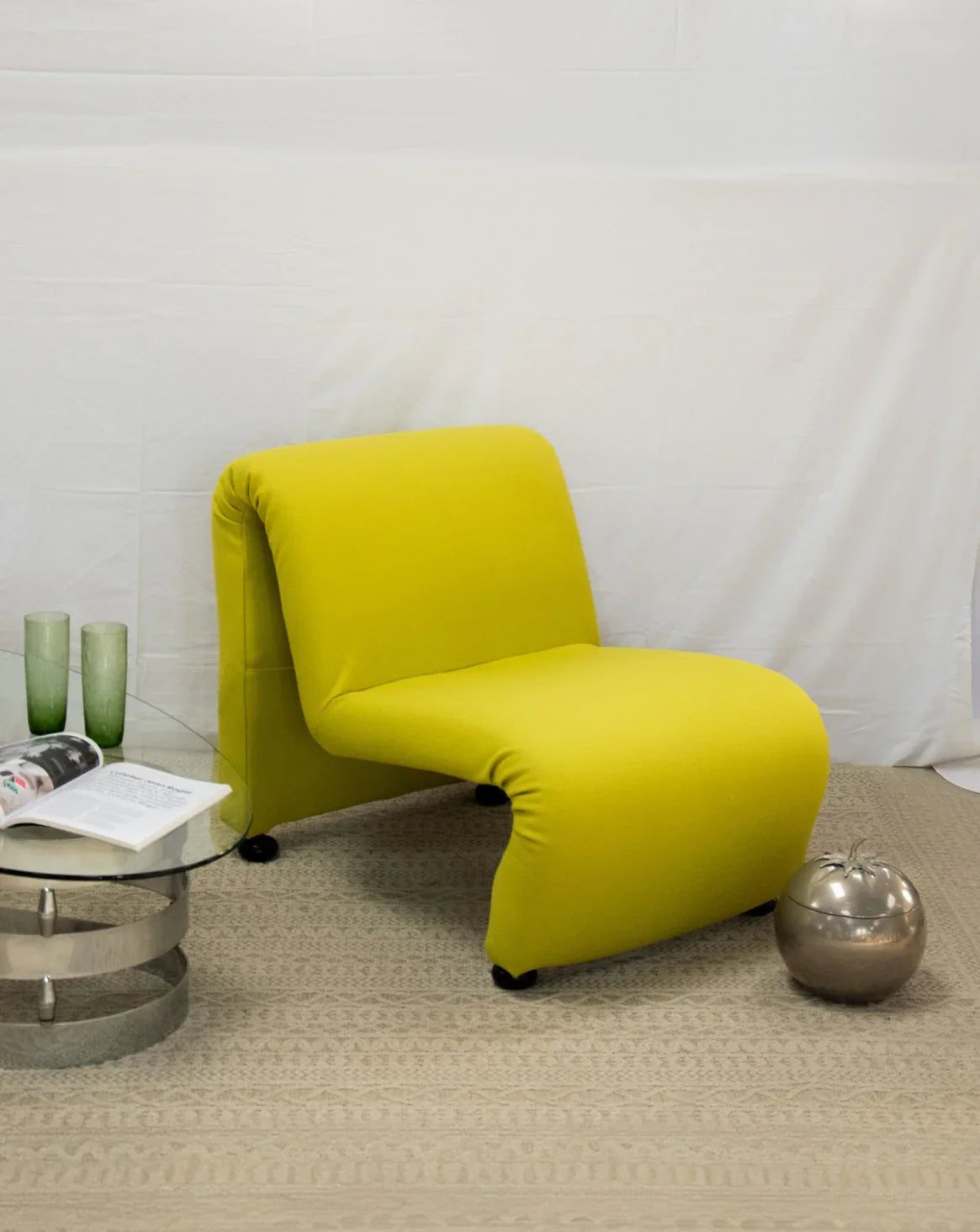 Découvrez cette magnifique chauffeuse verte, conçue par le designer Étienne Fermigier. Tout en tissu d’origine, elle allie confort et élégance avec ses lignes épurées et son coloris vibrant. Grâce à sa légèreté et à ses pieds ronds en plastique, cette pièce design est facile à déplacer et s’intègre harmonieusement dans tous les espaces. Offrez-vous une touche de modernité et de sophistication dans votre intérieur avec cette chauffeuse unique.