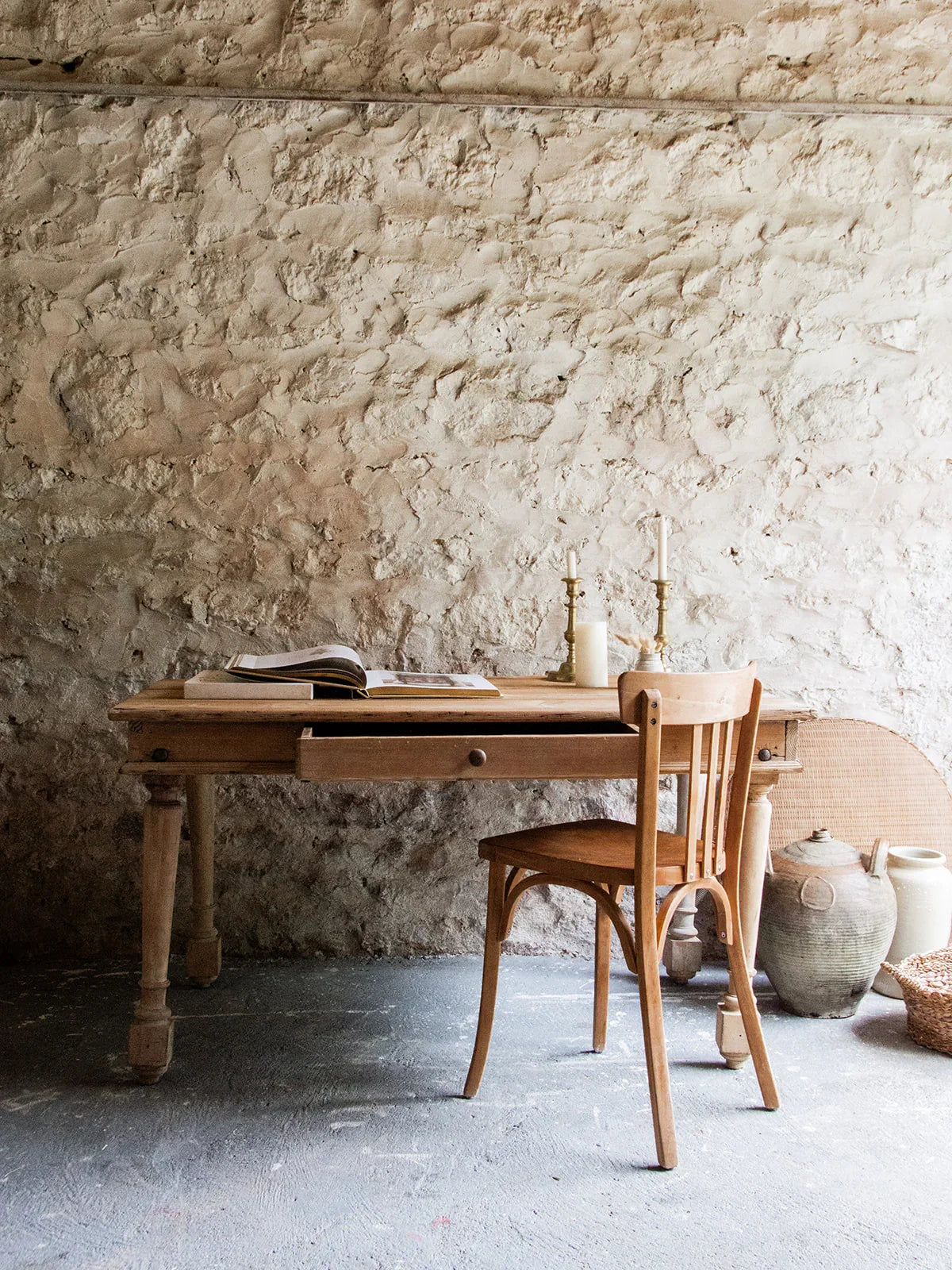La table de ferme est un design intemporel qui orne depuis longtemps les salles à manger. Cette table à manger en bois, inspirée de l’automne, est un indémodable pour une décoration vintage et bohème. Classique avec des teintes de bois vives et lumineuses et un aspect brut, elle est surtout choisie pour sa grande taille, son aspect uni et ses tiroirs placés sous le plateau. La grande table de ferme est un élément incontournable de toutes les réunions de famille !