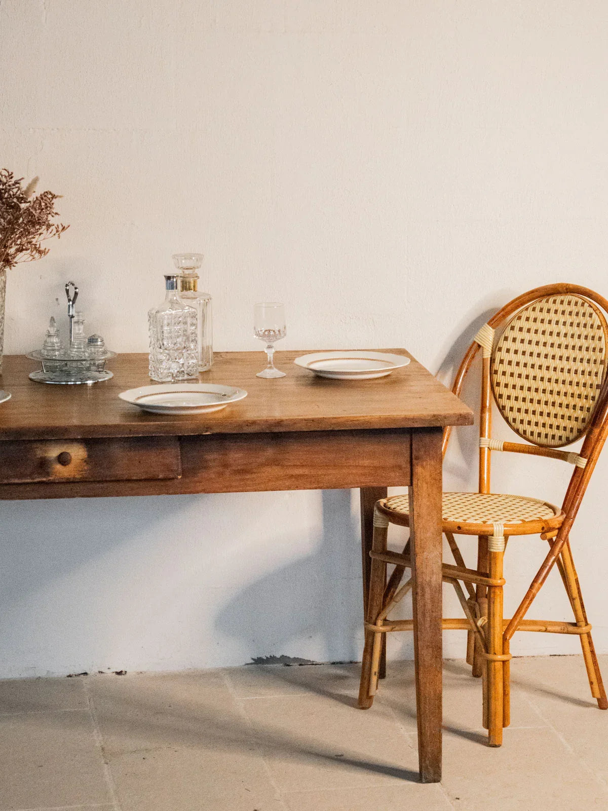 Découvrez la table de ferme Romy, en bois patiné au caractère chaleureux et aux proportions généreuses qui accueillent confortablement six convives. Son plateau robuste et ses pieds massifs évoquent un style rustique réinventé, parfait pour des dîners conviviaux ou comme plan de travail durable, tandis qu’un tiroir discret offre un rangement pratique, un peu raide à l’ouverture. La patine naturelle confère une belle authenticité et une ambiance accueillante. Traces du temps visibles, surtout autour du bouton de tiroir.