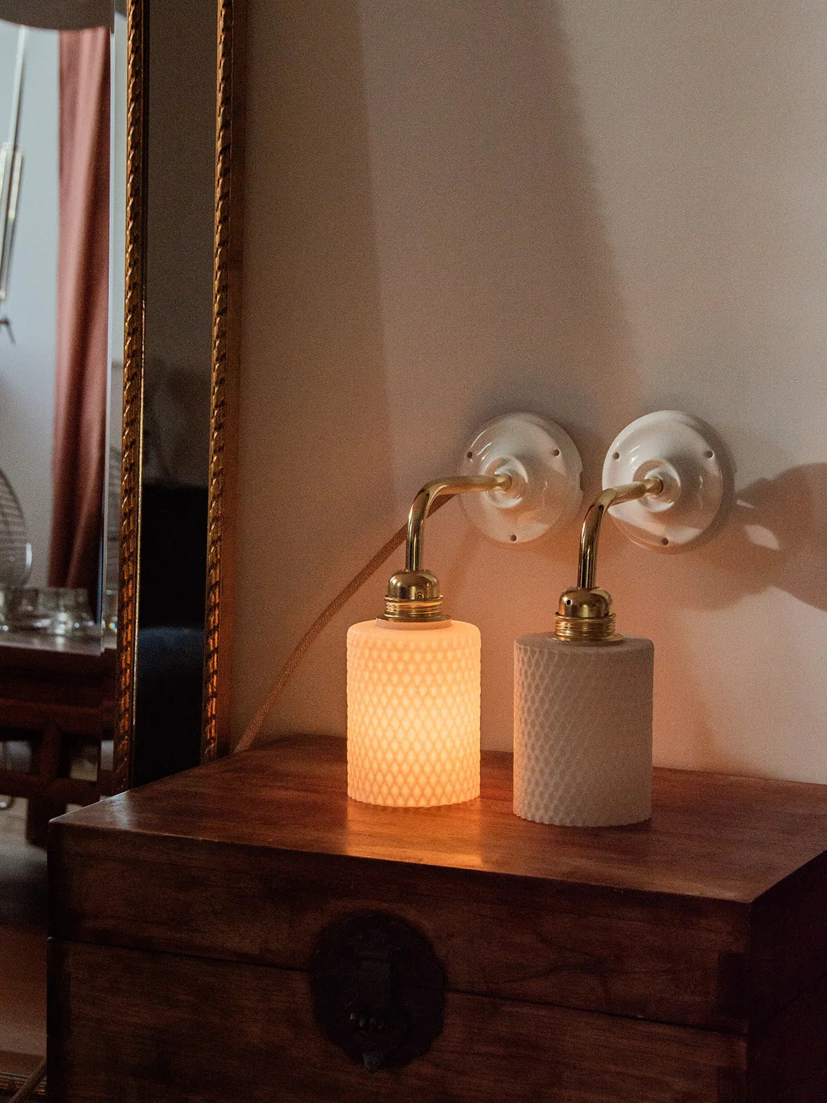 Suzette, c’est la version applique de nos Paulette ! Ces lampes à fixer au mur sont composées d’un globe en verre chiné. La petite touche vintage et sophistiquée parfaite pour styliser une chambre ou un salon. Chaque applique upcyclée est unique, montée à la main en France sur un bras doré et une base en porcelaine qui apporte une finition raffinée. La douille E27 et le wagon de raccordement assurent une installation simple et sécurisée. Conformes aux normes CE, ces appliques sont parfaites pour illuminer votre espace avec style. Nous adorons ces lampes Suzette pour leur verrerie scandinave blanche. Vendues sans ampoule.